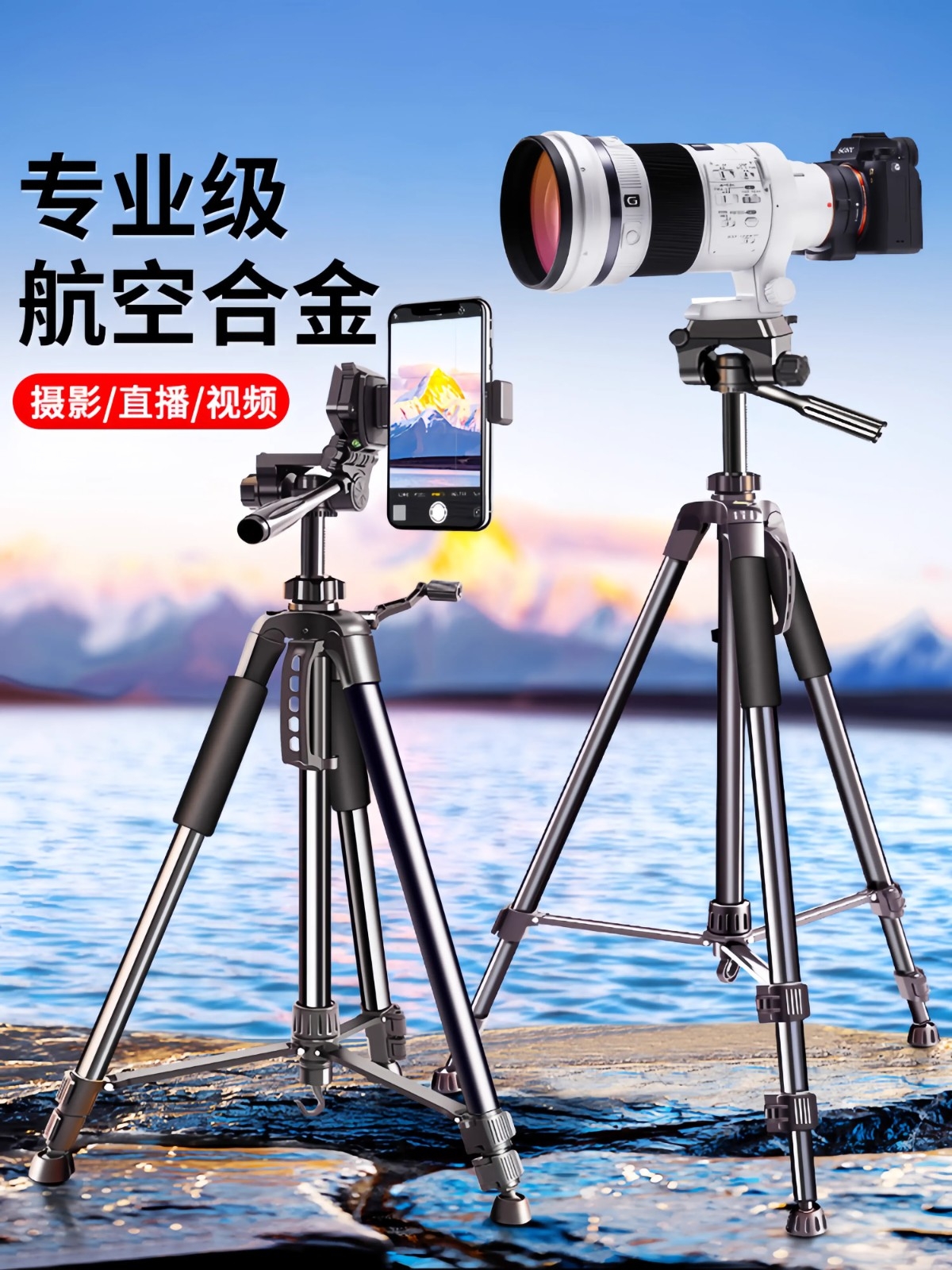 相机三脚架手机拍摄支架单反三角架直播专用